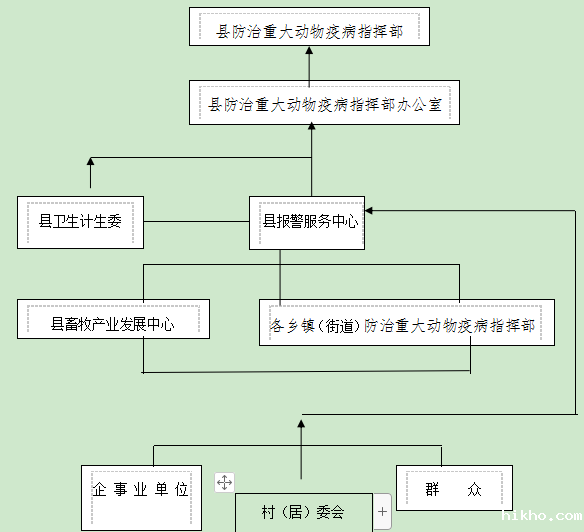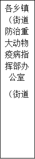 各乡镇(街道)人民政府(办事处)对本辖区动物防疫工作负总责,其主要领导是第一责任人。县人民政府建立防治动物疫病指挥部(以下简称指挥部),统一指挥、协调有关部门和单位做好辖区内重大动物疫病防治和畜产品安全工作。